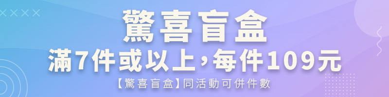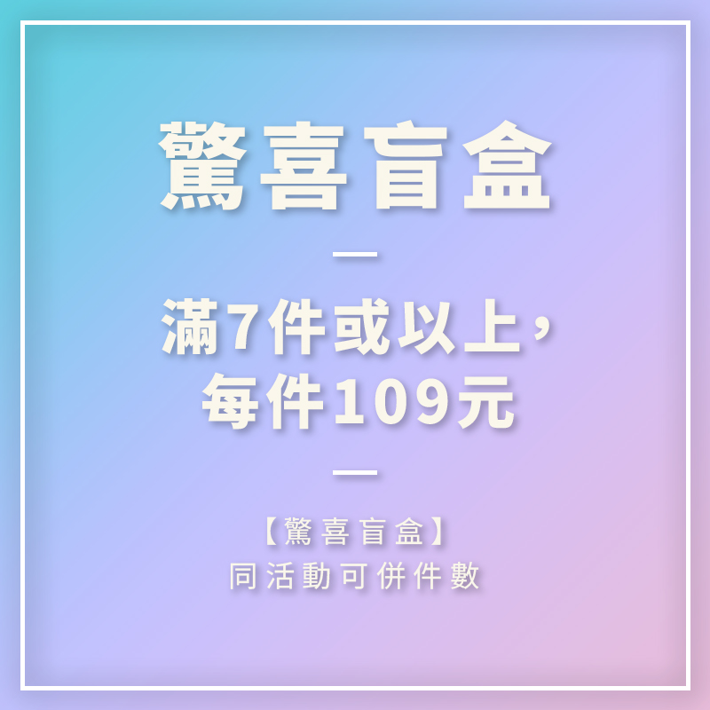 【驚喜盲盒】同活動可併件數,單筆訂單滿7件至16件,每件109元。